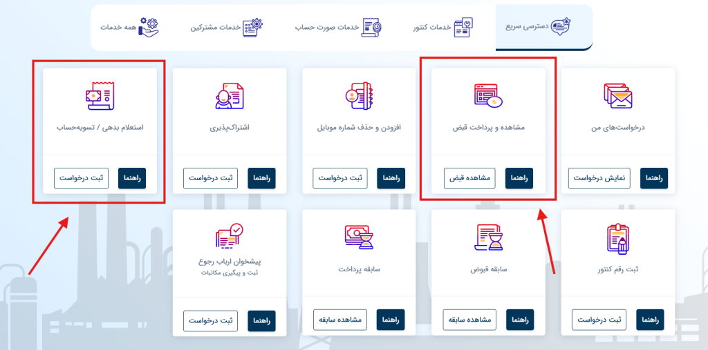 مشاهده و پرداخت قبض از طریق پنجره واحد خدمات شرکت گاز