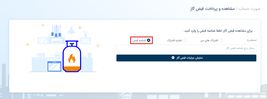 اکنون در صفحه مشاهده و پرداخت قبض گاز تیک گزینه شناسه قبض را فعال کنید و سپس شماره قبض را وارد کنید تا جزییات صورت حساب را مشاهده کنید. همچنین می توانید برای استعلام از  شماره اشتراک استفاده کنید.